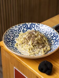 NUEVA PASTA EN RUEDA DE QUESO: Pasta con trufa mantecada en nuestra rueda de queso, cremosa, intensa y absolutamente irresistible.